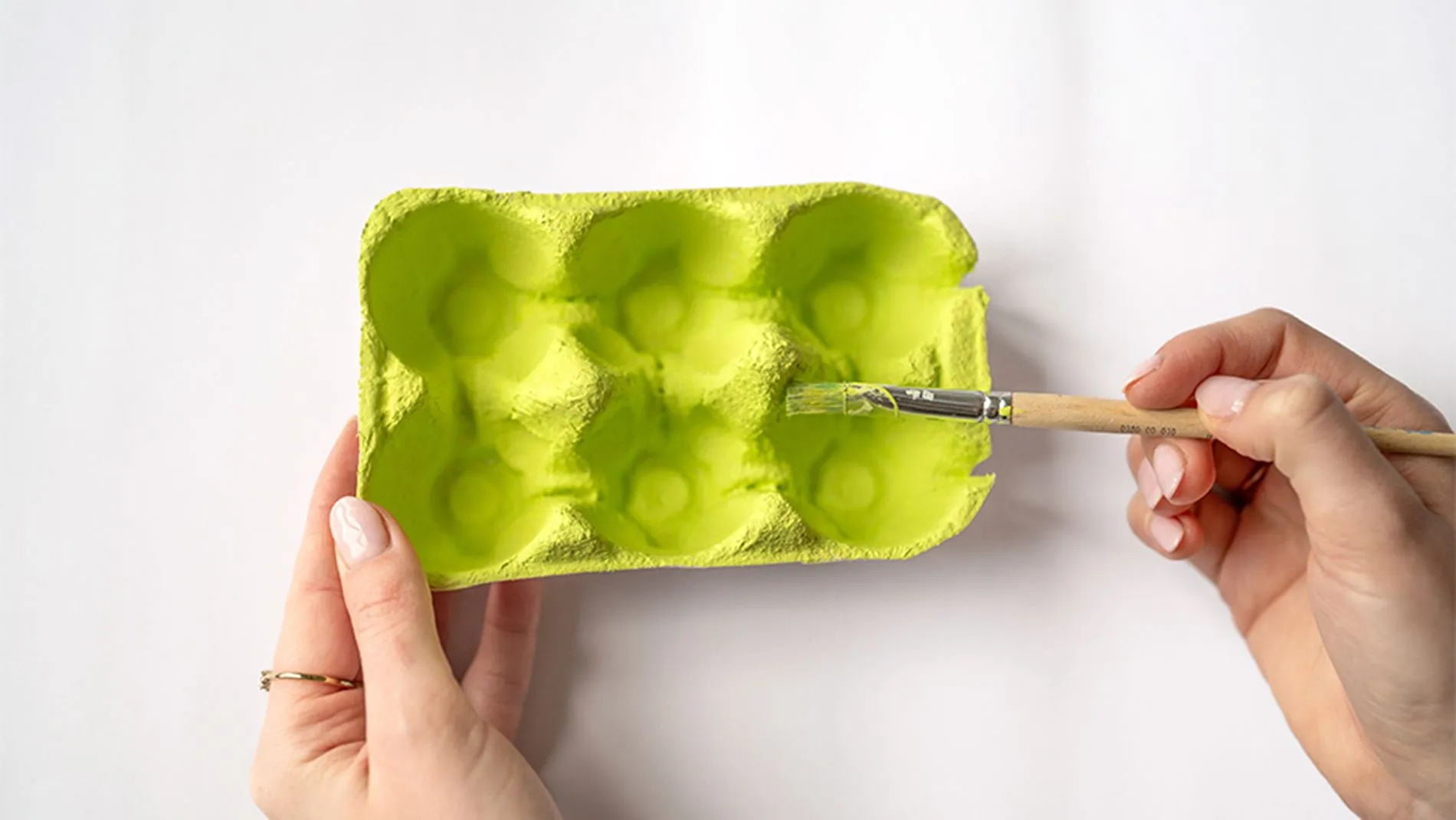 1. Eierkarton in gewünschter Größe zuschneiden bzw. halbieren. Die Innenseite des Kartons mit Farbe anmalen und gut trocknen lassen.